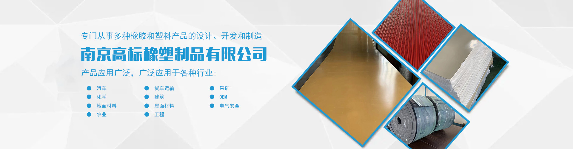 南京高標(biāo)橡塑制品有限公司是一家專業(yè)的橡膠板、橡膠制品和熱塑性塑料產(chǎn)品的制造商。主營(yíng)產(chǎn)品:三元乙丙橡膠板,丁腈橡膠版,氯丁橡膠板,丁苯橡膠板,丁基橡膠板,天然橡膠板,硅橡膠板,氟橡膠板,絕緣,防靜電,導(dǎo)電橡膠板,夾布,夾金屬網(wǎng)橡膠板,耐酸堿橡膠板,耐油橡膠板,耐磨橡膠板,阻燃橡膠板,阻尼橡膠板,減震橡膠板,防滑橡膠板,橡膠墊片等。 高標(biāo)橡塑專門(mén)從事多種橡膠和塑料產(chǎn)品的設(shè)計(jì)、開(kāi)發(fā)和制造。我們的產(chǎn)品應(yīng)用廣泛。廣泛應(yīng)用于各種行業(yè),包括:汽車,貨車運(yùn)輸,采礦,化學(xué),建筑,OEM,地面材料,屋面材料,電氣安全,農(nóng)業(yè),工程等。 高標(biāo)橡塑的客戶服務(wù)于許多行業(yè),包括墊片切割、分銷商、工業(yè)用品零售商和批發(fā)商。自